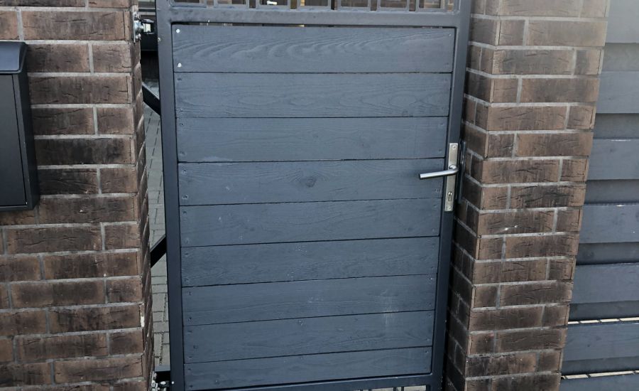 Dar vienas mūsų komandos darbas – atveriami vartai. Psirinkas dizainas derantis prie kitų kiemo elementų, naudota termomediena ir metalinės kontrukcijos. Atveriami vartai – puikus pasirinkimas norintiems ilgaamžiškų vartų, jais patogu ir saugu naudotis.